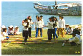 在京族各村,成年人都要入“乡饮簿”。入簿仪式,在农历每年十月初十举行。乡饮簿就是成年男子参加哈节乡宴的花名册。入簿仪式就相当于习俗上的“成丁礼”了。