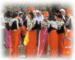 黑上衣,红筒裙,是景颇族妇女的传统服饰。男子着黑色衣裤或白衣黑裤,喜裹白布或黑布包头,外出是长刀、挎包不离身……