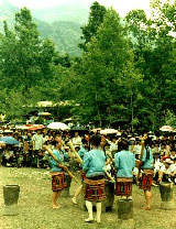 在节日期间,人们要举行歌舞盛会。夜晚山坡上、河岸边,青年男女燃起一堆堆篝火,跳起了古老独特的竹竿舞、银铃双刀舞、槟榔舞等富有民族特色的传统舞蹈。用舞蹈表达对生活的赞美,对劳动的热爱,对爱情的执著追求,整个节日,气氛欢快热烈,令人陶醉。