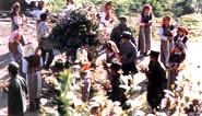 节日这天,姑娘们身穿绣有花边的衣裙,佩带着用珊瑚、玛瑙、贝壳串成的胸饰,小伙子们也穿上新衣,带上做好的粑粑和肉,背着弩弓,和姑娘们一起来到村外选好的场地。把粑粑和肉挂在大树上,小伙子们用弩弓去射,射中者,小伙子就把自己的粑粑和肉送给他。姑娘们节日中喜欢打秋千,在高大的核桃树上,挂上秋千,身穿节日盛装的姑娘们,争先恐后地一个个轮换荡起秋千板,荡得越高,越显示出姑娘们的勇敢和机智。