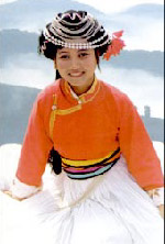 头饰 普米族女子头饰分两种,未婚女子留长辫,用牦牛尾毛或丝线合拌搓辫成长发一根,先挽在头上,再将一串丝辫挽在黑发之上,并放一根红线,表示未婚。这种头饰简明美观,普米女子出外赶集,或走亲访友,均系此种头饰。另一种头饰则用一丈二尺长的黑布为料,做成头帽一圈圈缠上头上,为一般已婚或老年妇女的头饰。