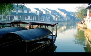 清晨,在清甜的风中醒来。推开临河的木质花格窗,向外微微地探出头去,深吸一口,清新的空气如水一般穿过你的身体,原来呼吸可以如此湿润。囫囵洗了脸,再顾不得吃什么,就忙不迭的奔下楼去,呆呆的立在石桥上,任晨风在身体的内外穿行。站在桥上,并不能看的太远,淡淡的晨雾与初升的太阳做着最后的纠缠。河道两边早起的人们沿河摆着煤球炉子升着火,袅袅的青烟里孕育着古镇人家一天的幸福生活。河的两岸,青檐错落,墙门紧锁,在晨雾与青烟之中愈远愈淡,最后缥缈不见。哪里还分得清,哪是雾,哪是烟。顺着河道望过去,被两边黛色沉稳的民居夹隔着,天空也便在水面上延伸了,只是这片天空里多了几点篙影船形、乌蓬蓑衣,在烟雾里不时隐现。水乡新的一天就如此向我们徐徐走来。